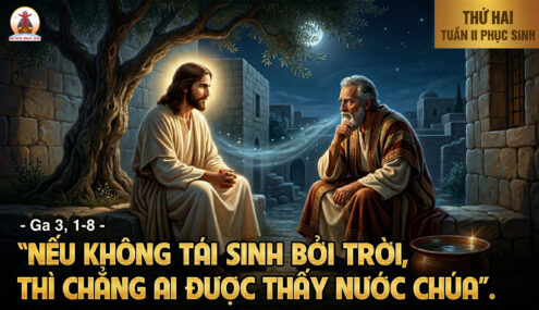 Bài Tin Mừng hôm nay nói về sự sinh ra bởi Thần Khí, sinh ra từ trên. Trong đêm tối, ông Nicôđêmô, một vị chức sắc của Thượng Hội Đồng, đến gặp Đức Giêsu, người mà ông kính trọng gọi là Rabbi. Ông tin Thầy Giêsu đến từ Thiên Chúa, và vì Thầy có Thiên Chúa ở cùng nên Thầy mới làm được nhiều dấu lạ. Có vẻ ông định hỏi Thầy về việc làm sao vào được Nước Thiên Chúa.