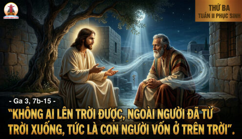 Khi ấy, Chúa Giêsu nói với Nicôđêmô rằng: “Thật, Tôi bảo cho ông biết: Ông đừng ngạc nhiên vì nghe Tôi nói rằng: Các ngươi phải tái sinh bởi trời. Gió muốn thổi đâu thì thổi, ông nghe tiếng gió, nhưng chẳng biết gió từ đâu đến và đi đâu: mọi kẻ sinh bởi Thần Linh cũng vậy”. Nicôđêmô hỏi lại rằng: “Việc ấy xảy ra thế nào được?” Chúa Giêsu đáp: “Ông là bậc thầy trong dân Israel mà ông không biết điều ấy sao? Thật, tôi bảo thật cho ông biết: Ðiều chúng tôi biết thì chúng tôi nói; điều chúng tôi thấy thì chúng tôi minh chứng. Nhưng các ông lại không nhận lời chứng của chúng tôi. Nếu khi Tôi nói về những sự dưới đất mà các ông không tin, khi Tôi nói những sự trên trời, các ông tin thế nào được? Không ai lên trời được, ngoài người đã từ trời xuống, tức là Con Người vốn ở trên trời. Cũng như Môsê treo con rắn nơi hoang địa thế nào, thì Con Người cũng phải bị treo lên như vậy, để những ai tin vào Người, thì không bị tiêu diệt muôn đời”. Ðó là lời Chúa.
