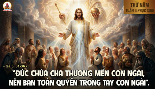 “Chúa Cha yêu thương người Con và đã giao mọi sự trong tay Người. Ai tin vào người Con thì được sự sống đời đời; còn kẻ nào không chịu tin vào người Con thì không được sự sống, nhưng cơn thịnh nộ của Thiên Chúa đè nặng trên kẻ ấy” (Ga 3,35-36).