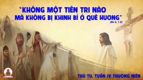 Khi ấy, Chúa Giêsu trở về quê nhà và các môn đệ cùng theo Người. Ðến ngày Sabát, Người vào giảng trong hội đường, và nhiều thính giả sủng sốt về giáo lý của Người, nên nói rằng: “Bởi đâu ông nầy được như vậy? Sao ông được khôn ngoan như vậy? Bởi đâu tay Người làm được những sự lạ thể ấy? Ông nầy chẳng phải bác thợ mộc con bà Maria, anh em với Giacôbê, Giuse, Giuđa và Simon sao? Chị em ông không ở với chúng ta đây sao?” Và họ vấp phạm vì Người. Chúa Giêsu liền bảo họ: “Không một tiên tri nào mà không bị kinh bỉ ở quê hương, gia đình họ hàng mình”. Ở đó Người không làm phép lạ nào được, ngoại trừ đặt tay chữa vài bệnh nhân, và Người ngạc nhiên vì họ cứng lòng tin. Người đi rảo qua các làng chung quanh mà giảng dạy. Ðó là Lời Chúa.