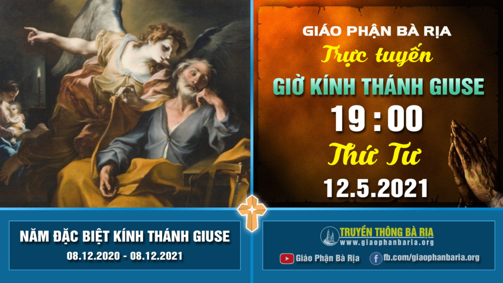 Kính gởi cộng đoàn nội dung Giờ kinh Kính Thánh Giuse vào lúc 19g00 Thứ Tư, ngày 12.5.2021. Kính mời cộng đoàn hiệp thông cầu nguyện.