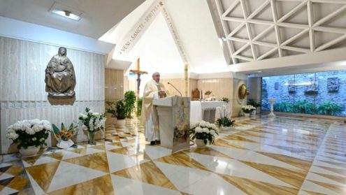 Sáng thứ Năm, tại Nhà nguyện Thánh Marta, vẫn như thường lệ vào lúc 7 giờ sáng, Đức Thánh Cha dâng Thánh lễ với chủ đích cho những ai không thể tham dự Thánh lễ trực tiếp có thể hiệp thông với Đức Thánh Cha. Tiếp tục hướng đến những hậu quả do đại dịch, Đức Thánh Cha xin mọi người cầu nguyện cho các gia đình nghèo, nạn nhân của nạn cho vay nặng lãi. Đức Thánh Cha nói: “Chúng ta biết một trong những ảnh hưởng của đại dịch này đó là các gia đình đang bị đói, nhưng thật không may họ lại bị những người cho vay nặng lãi lợi dụng, nói là để giúp đỡ nhưng thực ra đó là hình thức của nạn cho vay nặng lãi. Đây là một đại dịch khác. Đại dịch xã hội. Chúng ta cầu nguyện cho các gia đình, cho phẩm giá các gia đình và chúng ta cũng cầu nguyện cho những người cho vay nặng lãi. Xin Chúa chạm đến con tim họ để họ được ơn hoán cải”.