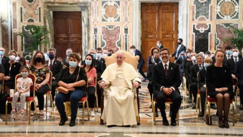 Khởi đi từ châm ngôn của Hiệp hội “Cầu nguyện, Hoạt động và Hy Sinh”, Đức Thánh Cha nói: “Đây là ba nguyên tắc cơ bản cho đời sống của Hiệp hội. Trong dịp gặp anh chị em vào năm ngoái, tôi đã tập trung vào ‘Cầu nguyện’. Năm nay, tôi muốn nhấn mạnh vào ‘Hoạt động’. Đại dịch đã đòi hỏi anh chị em suy nghĩ lại về các phương thức cụ thể cho các hoạt động bác ái mà thường ngày anh chị em vẫn thực hiện cho người nghèo ở Roma. Thực vậy, một hoàn cảnh khác thường cần phải có một phản ứng khác những phản ứng thường ngày”.