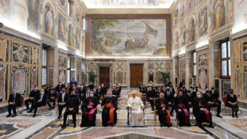Sáng thứ Sáu 11/12, Đức Thánh Cha đã tiếp phái đoàn từ Slovenia, nước đã tặng cây thông Giáng sinh, và phái đoàn từ giáo phận Teramo-Atri, nơi đã tặng hang đá với các nhân vật bằng gốm sứ, được trưng bày tại quảng trường thánh Phê-rô trong dịp lễ Giáng sinh năm nay.