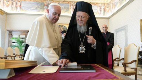 Đức Thánh Cha nhắc lại niềm vui trong chuyến thăm Roma của Đức Thượng Phụ Bartolomeo mới đây, khi các ngài không những chia sẻ mối quan tâm chung về hiện tại và tương lai của thế giới mà còn thể hiện cam kết chung trong việc giải quyết các vấn đề có ý nghĩa quan trọng đối với cả gia đình nhân loại, bao gồm việc chăm sóc thụ tạo, giáo dục thế hệ tương lai, đối thoại giữa các truyền thống tôn giáo khác nhau và theo đuổi hòa bình.