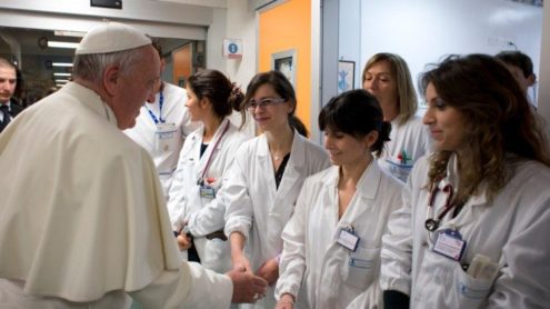 Đức Thánh Cha nhắc nhở rằng chúng ta phải chăm sóc cho bệnh nhân trong toàn thể con người họ: thân thể, trí tuệ, tình cảm, tự do và ý chí, đời sống thiêng liêng…. Ngài nói: “Việc chăm sóc không được phân chia; bởi vì con người không thể bị phân chia. Chúng ta có thể, một cách nghịch lý, cứu thân xác nhưng lại đánh mất nhân tính.”