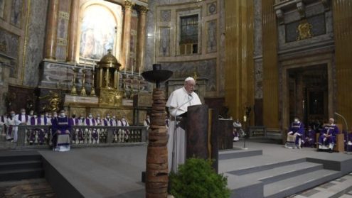 Đức Thánh Cha nói rằng các tu sĩ dòng Tên được mời gọi đi ra để đi đến đỉnh núi, là giới hạn, ranh giới giữa trời và đất, nơi con người vất vả “gặp” Thiên Chúa; được mời gọi chia sẻ cuộc tìm kiếm khó khăn và nghi ngờ về tôn giáo của họ. “Trong khi kẻ thù của bản chất con người muốn thuyết phục chúng ta luôn luôn quay lại những bước cũ, những bước lặp đi lặp lại vô ích, của sự thoải mái, của những gì đã thấy, thì Thánh Thần đề nghị mở ra, mang lại bình an nhưng không bao giờ ở lại trong sự bình an, để đưa các môn đệ đến tận cùng các biên cương. Hãy nghĩ về thánh Phanxicô Xaviê.”