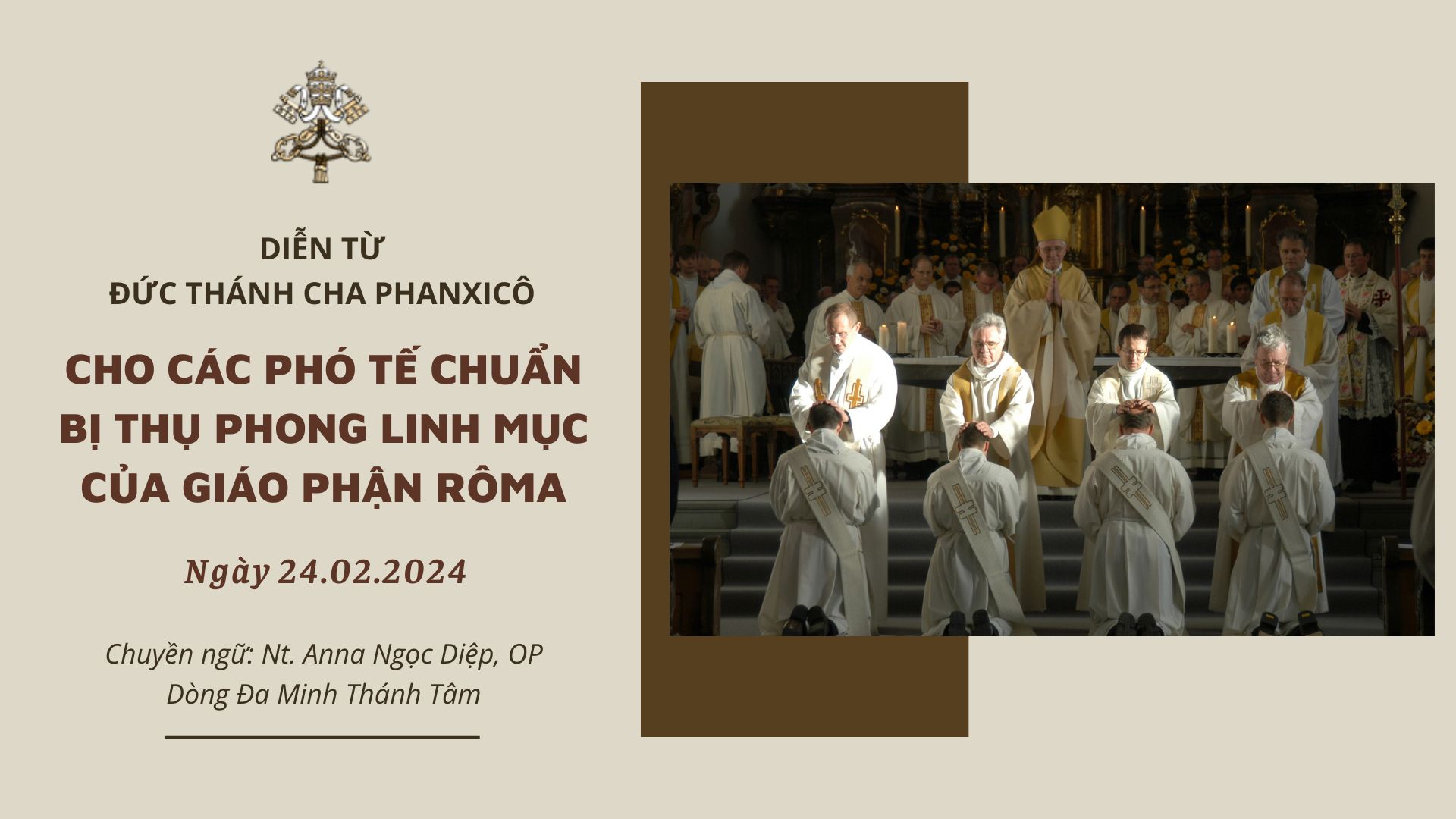 DÀNH CHO CÁC PHÓ TẾ CHUẨN BỊ THỤ PHONG LINH MỤC CỦA GIÁO PHẬN RÔMA