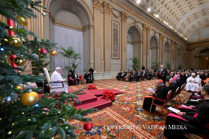 theo quan điểm Kitô giáo, Năm Thánh là thời gian ân sủng. Tôi mong muốn năm 2025 này thực sự là một năm ân sủng, giàu sự thật, sự tha thứ, tự do, công lý và hòa bình! “Niềm hy vọng được chất chứa trong trái tim mỗi người như một ước muốn và một mong đợi điều tốt lành”[12], và mỗi người đều được kêu gọi làm cho niềm hy vọng đó triển nở xung quanh họ. Đây là lời cầu chúc chân thành nhất mà tôi bày tỏ đối với tất cả quý vị, các Đại sứ thân mến, đối với gia đình của quý vị, đối với các nhà lãnh đạo và những dân tộc mà quý vị đại diện: ước gì niềm hy vọng triển nở trong trái tim chúng ta và thời đại của chúng ta tìm thấy nền hòa bình mà nó rất mong muốn.