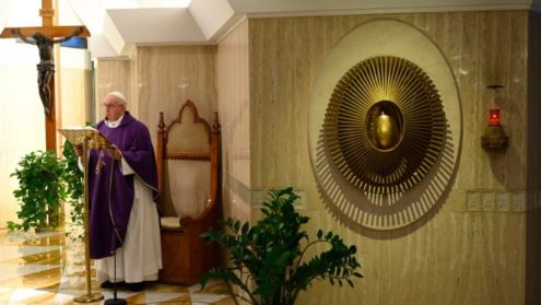 Sáng thứ Hai 30/3, tại Nhà nguyện Thánh Marta, Đức Thánh Cha dâng Thánh lễ cầu nguyện cho những người không thể phản ứng, không thể làm gì và sợ hãi trước đại dịch. Đức Thánh Cha mời gọi mọi người cầu nguyện xin Chúa giúp họ đứng lên, hành động vì lợi ích của toàn xã hội, của cả cộng đồng. Trong bài giảng, Đức Thánh Cha diễn giải cả hai bài đọc theo ngày, được trích từ Sách Tiên tri Daniel (Đn 13, 1-9. 15-17. 19-30. 33-62) và từ Tin Mừng Gioan (Ga 8, 1-11), nói về hai phụ nữ mà một số ông muốn kết án tử hình: bà Susanna vô tội và một phụ nữ bị bắt gặp đang ngoại tình