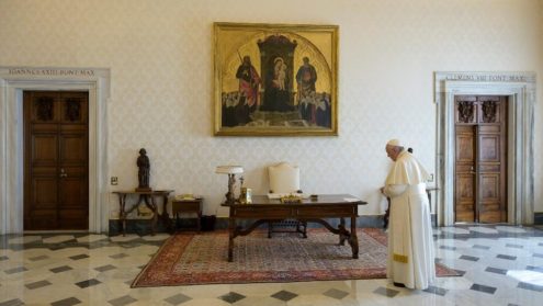 Vào lúc 12 giờ 25/3 Lễ Truyền Tin, từ Thư viện Dinh Tông tòa Đức Thánh Cha chủ sự buổi cầu nguyện với Kinh Lạy Cha cùng với tất cả vị lãnh đạo các Giáo hội của các hệ phái đức tin khác nhau, khẩn cầu Đấng Tối Cao, Thiên Chúa toàn năng. Sáng kiến này đã được Đức Thánh Cha đưa ra vào buổi đọc Kinh Truyền tin Chúa nhật 22/3 nhằm mục đích khẩn xin Thiên Chúa ngăn chặn đại dịch.