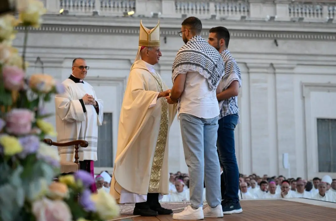 Ngài nói thêm: “Các con đến từ khắp nơi trên thế giới. Có những người bạn cũng đến từ các vùng chiến sự: từ Ucraina, từ Palestine. Ước gì vòng tay huynh đệ, vốn kết nối chúng ta thành một thân thể, mở rộng với tất cả mọi người; xin đừng để họ thiếu vắng những dấu chỉ của tình bạn của các con”.