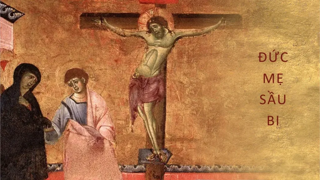 Đứng gần thập giá Đức Giêsu, có thân mẫu Người, chị của thân mẫu, bà Maria vợ ông Cơlôpát, cùng với bà Maria Mácđala. Khi thấy thân mẫu và môn đệ mình thương mến đứng bên cạnh, Đức Giêsu nói với thân mẫu rằng: “Thưa Bà, đây là con của Bà.” Rồi Người nói với môn đệ: “Đây là mẹ của anh.” Kể từ giờ đó, người môn đệ rước bà về nhà mình. (Ga 19,25-27).