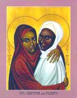Perpêtua và Phêlixita, cùng với các bạn chịu chết với các Ngài năm 203 tại Carthage, là những khuôn mặt sống động đặc biệt trong số các thánh tử đạo vào các thế kỷ đầu. Chúng ta có được những tường thuật chính xác về cuộc tử đạo của các Ngài nhờ vào tài liệu đương thời, bao gồm những nhật ký của chính thánh Perpêtua, một trang sử của vị tử đạo khác và một câu chuyện do nhân chứng đầu tiên, có lẽ là Tertulianô viết lại.Dưới cuộc bách hại của Septimô Sêvêrô. Một phụ nữ trẻ thuộc gia đình danh giá tên là Vibia Perpêtua đã bị bắt cùng với hai thanh niên là Saturnunô và Secundôiô, với hai người nô lệ là Revecatô và Phêlicitê. Tất cả đều đang học với một giáo dân tên là Saturô. Thấy các học viên của mình bị bắt, Saturô cũng tự nộp mình để khỏi phải xa lìa họ.Cha của Perpêtua là một người thờ ngẫu tượng nài nỉ con mình trung thành với ngoại giáo. nhưng chỉ vào một cái bình, thánh nữ trả lời : – Thưa cha, người ta có thể gọi vật này bằng cái tên nào khác hơn là cái bình không ? Đối với con cũng vậy con không thể cho mình một cái tên nào khác ngoài danh hiệu là Kitô hữu.Người cha liền lao vào con như muốn móc mắt và ông đánh đập Perpêtua tàn nhẫn. Rồi ông rút lui. Nhiều ngày sau thánh nữ không gặp lại ông. Trong những ngày đó Perpêtua cùng với các bạn còn đang dự tòng đã được rửa tội.Khi người ta dìm vào nước, thánh nữ đã chỉ nguyện xin một lời này là: được sức mạnh để chịu đựng nên các đau khổ của cuộc tử đạo. Bây giờ họ bị dồn chung vào một phòng chật hẹp tối om. Đút lót tiền bạc, họ được rộng rãi hơn một chút, Perpêtua mẹ của một đứa bé còn đang bú đã phải đau khổ nhiều vì xa con. Đứa bé kiệt sức. Người ta trả nó lại cho mẹ và người mẹ vui sướng quên hết mọi đau đớn. Ngục tù đã trở nên cung diện đối với Ngài. Các thi kiến thánh nữ được thấy, an ủi Ngài nhiều và nâng cao niềm hy vọng của Ngài ngay khi còn ở trần gian này.Người ta biết rằng: các tù nhân sắp bị xét xử. Người cha của Perpêtua thất vọng. Ông đến thăm con gái mình và thốt ra những lời van xin nghe muốn đứt ruột: – “Con ơi, hãy thương mái tóc bạc của cha, hãy thương cha. Hãy nhớ tới đôi tay cha đây đã dưỡng nuôi con. Hãy tưởng tượng tới mẹ con, anh em con, con của con nữa, không có con nó sống sao được. Bỏ đi con, điều dốc quyết làm cho chúng ta mất tất cả”.Tất cả điều này thật là độc dữ đối với Perpêtua. Thánh nữ nói:- Thưa cha, tại tòa án sẽ xẩy ra điều Chúa muốn, bởi vì chúng ta không thuộc về mình.Người cha còn cho người đem đứa trẻ tới năn nỉ lần nữa :- Hãy thương đến con của con.Trong khi đó các tù nhân tuyên bố rằng họ đều sẵn sàng hy sinh tất cả cho Thiên Chúa. Họ bị giải tới nhà tù gần hí trường, Perpêtua đã cầu nguyện ngày đêm cho một người em chết vì ung thư. Trong một thị kiến Ngài đã thấy nó trong một nơi tối tăm, bây giờ lên một nơi ngập đầy ánh sáng.Phêlicitê hạ sinh một đứa con trai. Khi Ngài rên xiết vì đau đớn, một người lính gác ngục chế nhạo người rằng: – Nếu không chịu nổi đau đớn lúc này, làm sao cô chịu nổi các thú dữ ?Phêlicitê trả lời: – Hôm nay tôi khổ vì tôi nhưng khi tôi chết vì đạo, sẽ có một người khác trong tôi chịu khổ cho tôi, bởi vì tôi chịu cực khổ vì Ngài.Trong khi chờ đợi cái chết độc dữ đã được dành sẵn, các tù nhân vẫn giữ được cái tính hài hước lành mạnh và vui tươi của họ, thánh Perpêtua nói: – Còn sống chúng ta luôn vui tươi, trong cuộc sống khác, chúng ta sẽ hân hoan mãi.Ngày vui chơi đến, họ phải diễn trò cho thiên hạ. Người cha của Perpêtua tàn héo vì sầu muộn, nhưng thánh nữ luôn có thị kiến. Khi các thánh tử đạo tiến vào hí trường, các Ngài tỏ vẻ vui tươi phấn khởi. Perpêtua thì ca hát. Trước mặt dân chúng, Ngài đã trả lời quan tòa: – Ngài xét xử chúng tôi, nhưng Thiên Chúa xét xử Ngài.Quan tòa truyền đánh đòn các Ngài, nhưng các Ngài lại cảm thấy hạnh phúc vì được giống Chúa Kitô thày mình. Thú dữ được thả ra, những người trẻ bị cắn xé, Perpêtua và Phêlicitê bị lột áo. Các Ngài đòi lại và người ta chấp nhận cho các Ngài đặc ân này. Các Ngài bị gói vào trong một cái lưới. Một con bò cái hung hãn xông vào Perpêtua, hất tung Ngài lên trời, rớt xuống đất Ngài vẫn còn sống và Ngài cúi nhìn người nữ tì Phêlicitê của mình đang nằm sõng sượt trên mặt đất, và giúp nàng chỗi dậy. Dân chúng trong một lúc hết hung hăng đã xin trả tự do cho các vị tử đạo. Perpêtua tin rằng: mình vừa thức dậy từ một cơn mơ. Phải thấy những vết thương đã chịu, Ngài mới tin là sự thật, Ngài nói với Rusticus và em mình rằng: – Hãy vững tin, đừng kinh ngạc vì những đau khổ của chúng tôi.Đám dân chúng dễ bị khích động và thất thường lại đòi giết những người này. Ngài hôn chuc bình an và đưa