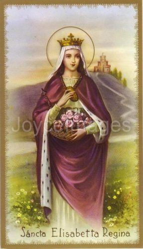 Đối với những người nghèo khổ mà mắc cỡ, thánh nữ mang của bố thí đến cho họ. Vào một ngày mùa đông, Ngài giấu đồ cứu trợ trong áo. Chồng Ngài bắt gặp và lên tiếng hỏi. Thấy chồng giận dữ, Ngài không dám trả lời. Nhà vua giật áo Ngài ra. Và lạ lùng nhà vua chỉ thấy toàn là hoa hồng. Để ghi nhớ phép lạ này, một cửa vào tu viện thánh Clara do thánh nữ thiết lập được đặt tên là hoa hồng.