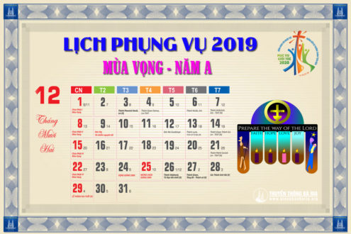 Lịch Phụng vụ từ ngày 01.12.2019 đến 08.12.2019