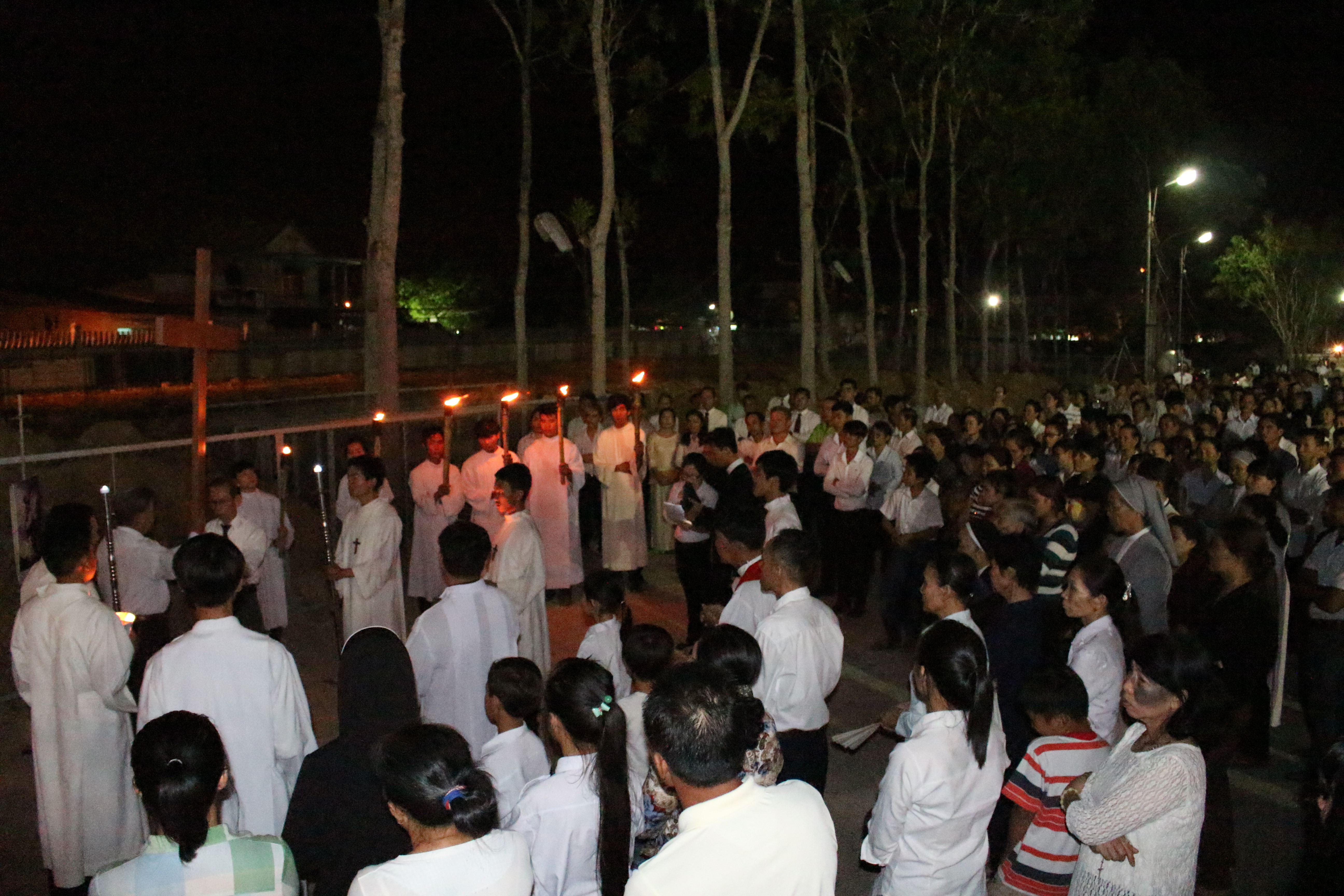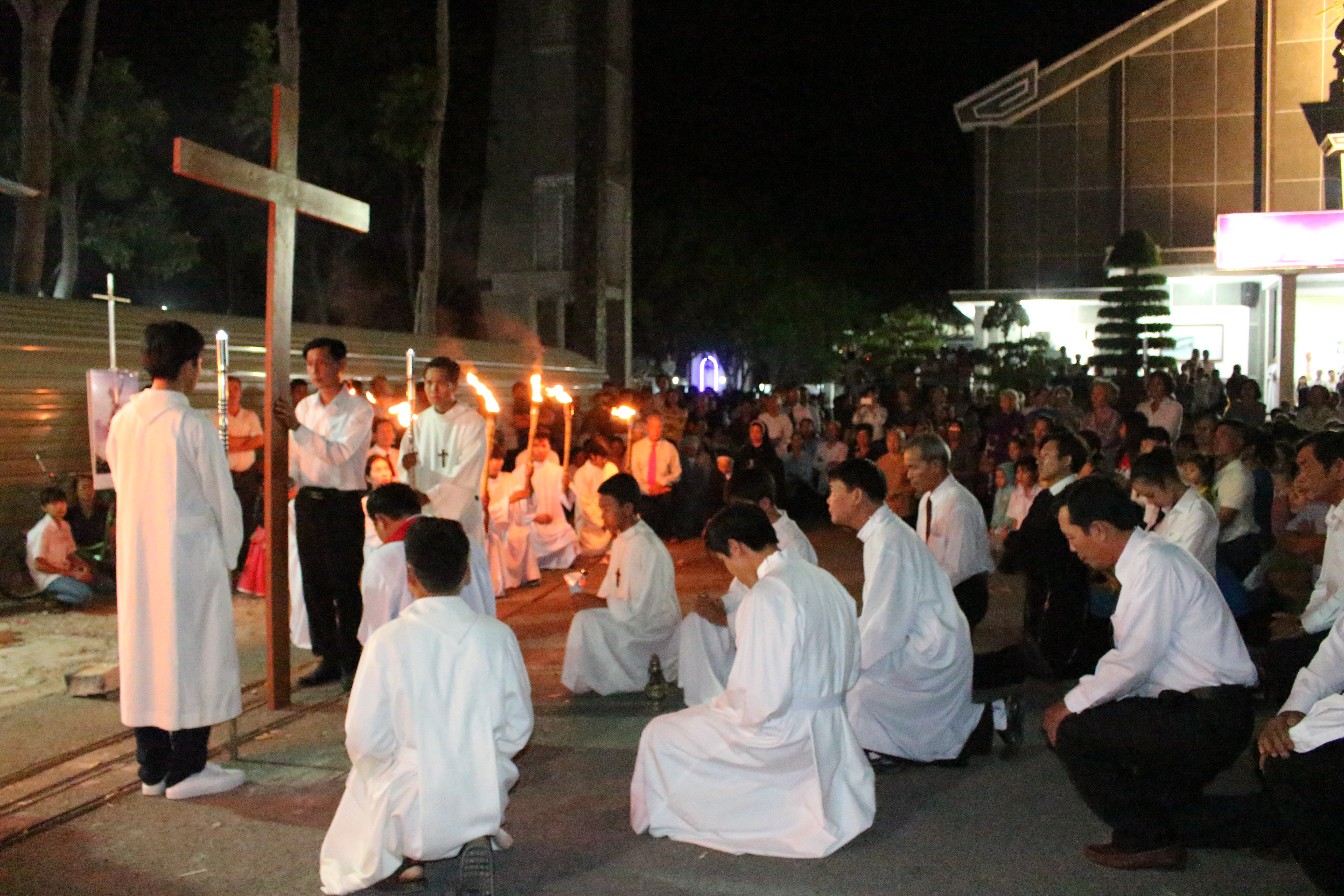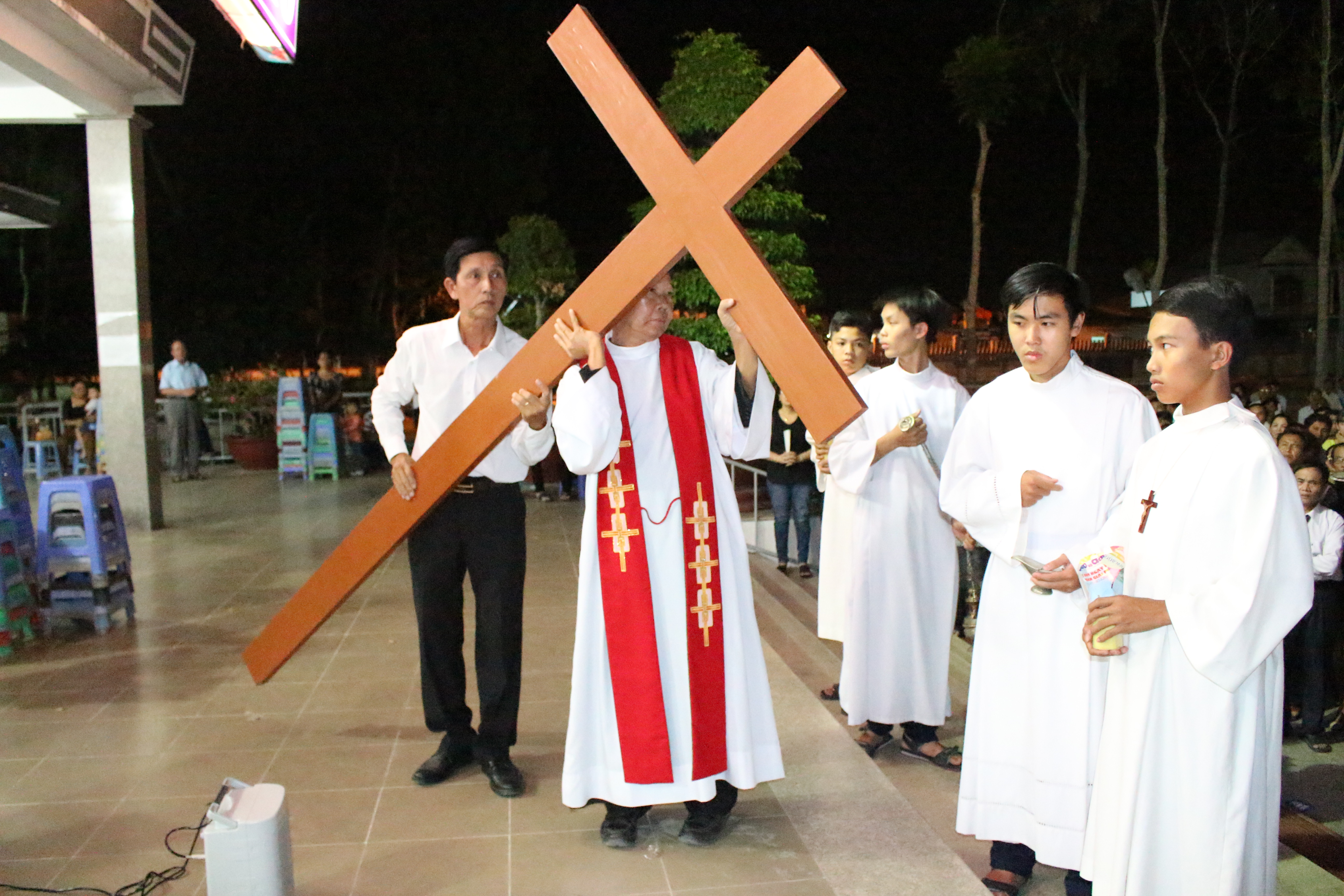 Sau thánh lễ tối thứ 6, đông đảo cộng đoàn cùng sốt sắng đồng hành với Chúa Giêsu qua 14 chặng đường Thánh Giá, để thông phần vào cuộc khổ nạn của Chúa Giêsu trên con đường thập giá cứu độ.