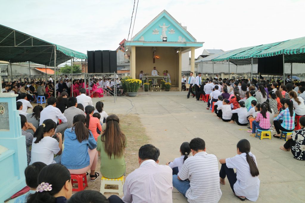 Kết thúc thánh lễ chiều Mùng Hai Tết, các gia đình nán lại tại các phần mộ thân nhân để dâng lên Chúa và Mẹ Maria những lời kinh, mong rằng những thân nhân đã nằm xuống nơi đây sớm được hưởng ơn cứu độ và nhan thánh của Chúa.