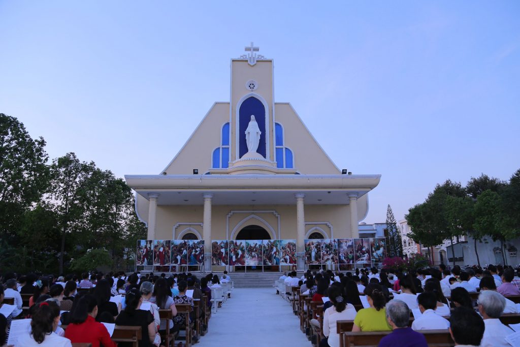 18g00, tại sân nhà thờ, Cha Chánh xứ cùng Cộng đoàn tham dự 14 đàng Thánh Giá để đi lại những chặng đường thập giá năm xưa Chúa đã đi qua, để thông phần đau khổ với Chúa cũng như mỗi người được mời gọi vác thập chính mình trong cuộc sống xã hội hôm nay.