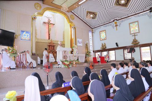 Thánh lễ tạ ơn mừng Kim khánh linh mục Cha cố Giuse do Đức cha Giuse Vũ Văn Thiên – Giám mục Giáo phận Hải Phòng chủ tế. Tham dự thánh lễ có Đức cha Tôma Nguyễn Văn Trâm – Giám mục Giáo phận Bà Rịa cùng Đức cha Phó Emmanuel, Cha Quản hạt Vũng Tàu, các linh mục trong Giáo phận cùng đông đảo quý tu sĩ nam nữ, cộng đoàn dân Chúa Giáo xứ Thuỷ Giang và gia đình linh tông của Cha cố Giuse.