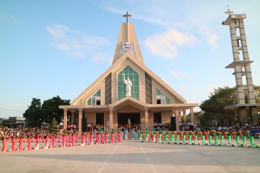 Sau cuộc rước kiệu, Đức Mẹ được đặt trang trọng tại cuối nhà thờ. Và ở tiền đường nhà thờ, cộng đoàn đã cùng hiệp thông với các em thiếu nhi trong hội hoa dâng lên Mẹ những đóa hoa tươi đẹp nhất, hòa chung những âm điệu trìu mến của những bài hát ngợi khen Mẹ Maria do ca đoàn giáo xứ phụ trách.
