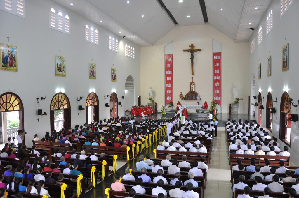 Đúng 8g30, Đức cha và quý cha đồng tế cùng đoàn rước tiến vào thánh đường hiệp dâng thánh lễ do Đức cha Emmanuel chủ sự. Đồng tế với ngài có Cha Giuse Võ Công Tiến – Tổng Đại diện Giáo phận Bà Rịa, quý Cha cố cùng quý Cha trong hạt Xuyên Mộc. cộng đoàn phụng vụ gồm quý phụ huynh, cha mẹ đỡ đầu cùng đông đảo cộng đoàn giáo xứ sốt sắng tham dự thánh lễ cầu nguyện cho các em sắp lãnh nhận hồng ân Chúa Thánh Thần.