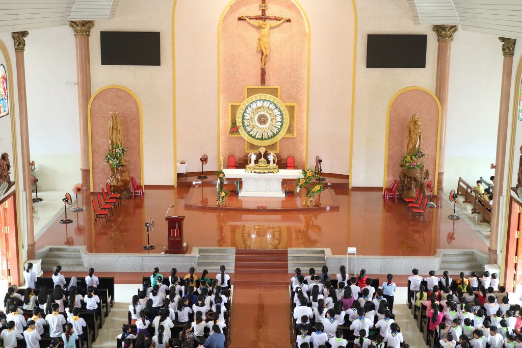 Khởi đầu thánh lễ Cha chủ tế đã nhắc lại truyền thống rất tốt đẹp và thánh thiện của Giáo phận chúng ta đó là các giáo xứ trong Giáo phận luân phiên tổ chức ngày Chầu Thánh Thể thay cho Giáo phận. Điều đó giúp cho mỗi người chúng ta có lòng yêu mến, tôn kính Thánh Thể và cũng chính nhờ vậy chúng ta sẽ nhận được tràn đầy ơn Chúa.