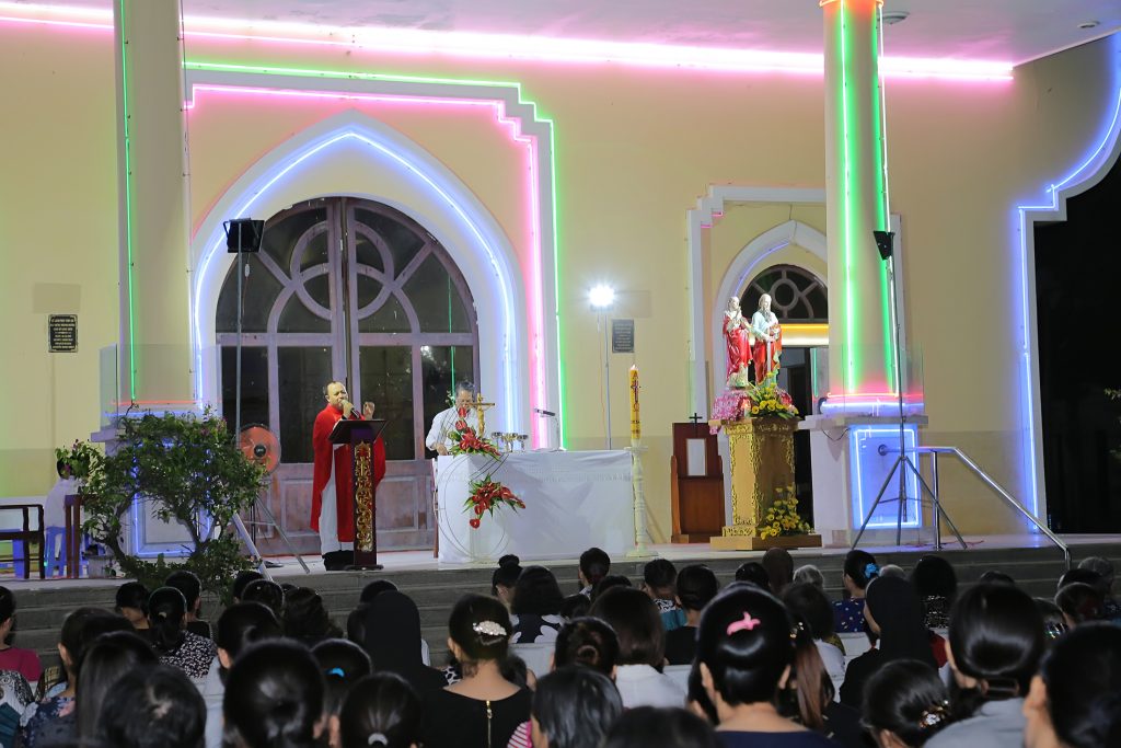 Cùng với Giáo Hội hoàn vũ hân hoan mừng Lễ hai thánh Phêrô và Phaolô Tông Đồ, cộng đoàn dân Chúa Giáo xứ Long Kiên cũng long trọng mừng kính hai vị thánh cột trụ của giáo hội vào lúc 19g30 ngày 29.6.2017 tại tiền sảnh sân nhà thờ giáo xứ. Thánh lễ do Cha Chánh xứ Phêrô Nguyễn Quy Hùng chủ sự cùng sự hiệp thông của tất cả các em thiếu nhi và đông đảo cộng đoàn trong giáo xứ tham dự.