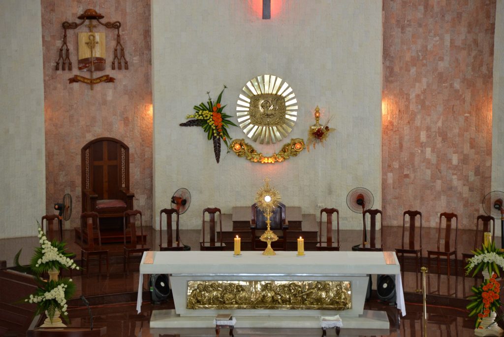 Liên hệ đến Bí tích Thánh Thể, Cha nói: “Hôm nay Giáo xứ Chánh Tòa, đặc biệt được “đón nhận” ân phúc cao trọng hơn cả kho báu và viên ngọc quý, tức là niềm vinh dự cho Giáo xứ được dâng Thánh Lễ tạ ơn Thiên Chúa và khai mạc giờ chầu Thánh Thể thay cho Giáo phận, đây là hồng phúc lớn lao cho mỗi người và cho giáo phận của chúng ta. Vì mỗi người khi biết đặt mình vào những tâm tình tri ân, cảm tạ hồng ân Thiên Chúa, đó chính là một sự chọn lựa đầy khôn ngoan của chúng ta, vì “được tạ ơn Thiên Chúa lại là một hồng ân” được nối tiếp hồng ân. Đồng thời việc yêu mến và suy tôn Bí tích Thánh Thể, cũng chính là một sự đảm bảo chắc chắn cho chúng ta được vững vàng bước đi trong cuộc hành trình đức tin để tiến về Nước Trời”.