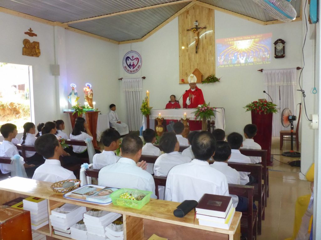 Ngày 17.9.2017 vừa qua là một ngày hồng phúc của cộng đoàn Giáo họ Côn Sơn khi Giáo họ hân hoan đón chào Đức cha Emmanuel- Giám mục Giáo phận Bà Rịa viếng thăm mục vụ và ban Bí tích Thêm sức cho 21 em thiếu nhi trong giáo họ.