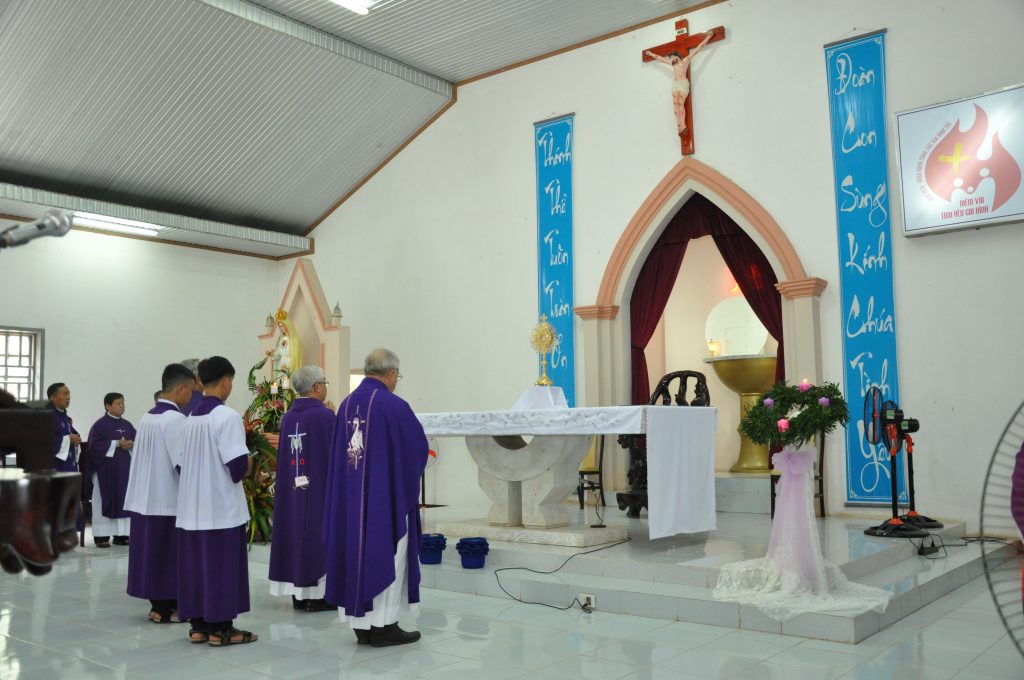 Đúng 9g30, thánh lễ đồng tế khai mạc ngày chầu được cử hành trọng thể do Cha Anphongsô Nguyễn Văn Thế – Quản hạt Xuyên Mộc chủ sự. Cùng đồng tế với ngài còn có Cha Giuse Võ Công Tiến – Tổng Đại diện Giáo phận Bà Rịa, quý cha cố, quý cha trong Giáo hạt Xuyên Mộc. Quý tu sĩ và đông đảo giáo dân trong giáo họ sốt sắng tham dự thánh lễ.