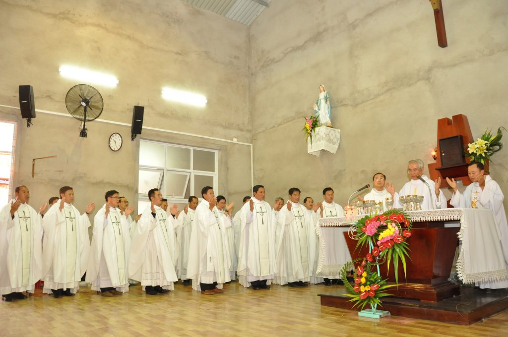 Chủ tế trong thánh lễ tạ ơn là Cha Giuse Võ Công Tiến – Tổng Đại diện Giáo phận Bà Rịa. Cùng hiệp dâng và cầu nguyện còn có Cha Giuse Đặng Cao Trí – Quản hạt Bình Giã; Cha Giuse Đoàn Như Nghĩa- Giám đốc Chủng sinh Giáo phận; quý cha, quý tu sĩ, ân nhân và đông đảo cộng đoàn dân Chúa.