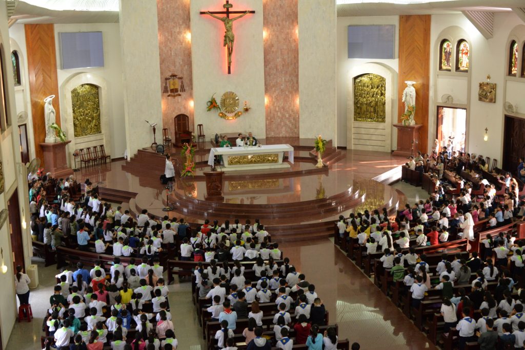 Thánh lễ do Đức Cha Emmanuel chủ tế. Cha Phó Gioan Boscô Phạm Đặng Trung Minh, đặc trách giới thiếu nhi và Giáo lý viên giáo xứ đồng tế với Đức cha. Khoảng 800 thiếu thi và có khá đông các phụ huynh sốt sắng hiệp dâng Thánh lễ.