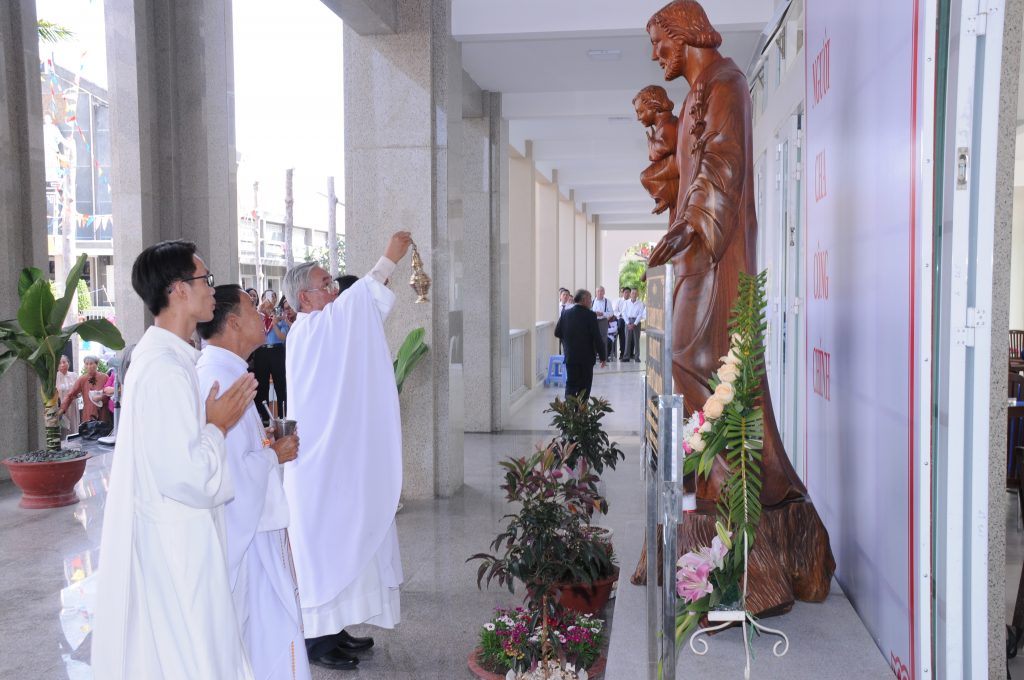 Tiếp theo nghi thức làm phép Nhà mục vụ, đoàn rước tiến vào nhà thờ hiệp dâng Thánh lễ Tạ ơn mừng kính Thánh Giuse- Bổn Mạng Giáo xứ. Thánh lễ do Cha Tổng Đại Diện Giuse chủ tế.