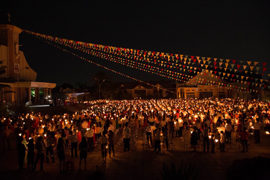 Đúng 20g00, Cha Chánh xứ đã chủ sự các Nghi thức Vọng Phục Sinh và thánh lễ cùng đông đảo cộng đoàn trong giáo xứ trước Nhà Giáo lý.