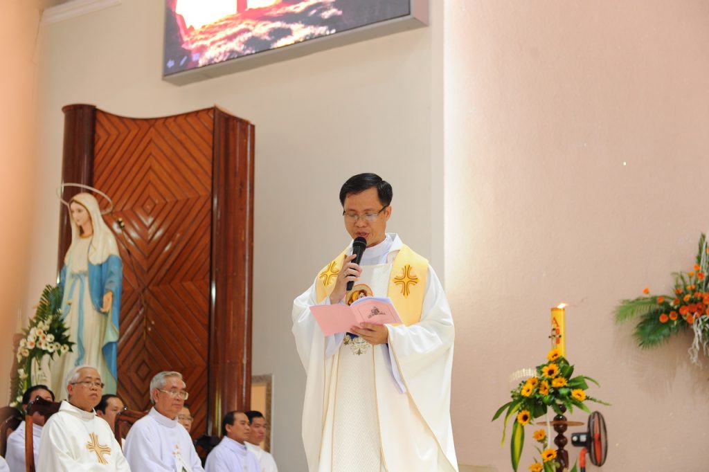 Sau lời khẩn nguyện xin ơn Chúa Thánh Thần, Cha Giuse Nguyễn Công Luận – Chánh Văn phòng Tòa Giám mục công bố văn thư của Đức Giám mục Giáo phận bổ nhiệm Cha Giuse Đinh Phước Đại làm Chánh xứ Hòa Thuận. Cha Tân Chánh xứ Giuse vui mừng đón nhận văn thư bổ nhiệm từ Đức cha trong sự hân hoan của cả cộng đoàn.