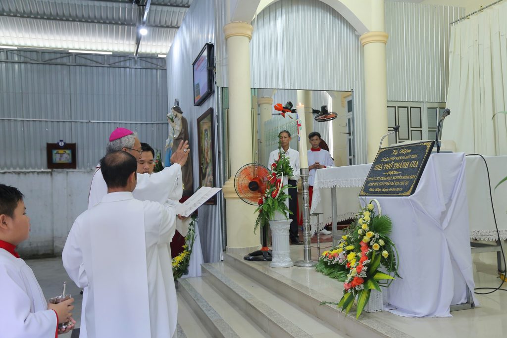 Sau lời nguyện hiệp lễ, Cha Phaolô Lê Trần Hoàng Phan- Phụ trách Giáo họ Biệt lập Thánh Gia đã dâng lời tri ân Đức cha, quý cha cũng như cảm ơn những tấm lòng quảng đại đỡ nâng của quý vị ân nhân, thân nhân và tất cả những ai chung tay góp sức xây dựng ngôi thánh đường này, để công trình nhà Chúa được khởi sự và hoàn thành đẹp Thánh ý Ngài.
