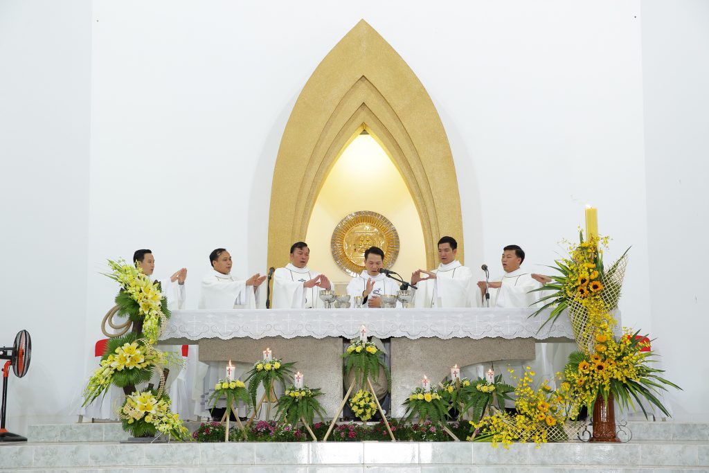 Đồng tế với Cha Mới Giuse có 06 Cha cùng Khóa vừa được Đức cha Emmanuel Nguyễn Hồng Sơn – Giám mục Giáo phận Bà Rịa truyền chức linh mục vào ngày 05.7.2018 vừa qua, tại Nhà thờ Chánh Tòa Bà Rịa; Cha Giuse Võ Công Tiến – Tổng Đại diện Giáo phận, Cha Nghĩa phụ Laurensô Hứa Văn Mỹ – Hưu dưỡng, Cha Chưởng ấn TGM Bà Rịa. quý cha quản hạt cùng quý cha trong và ngoài giáo phận.