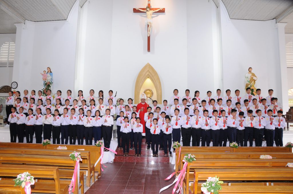 Vào lúc 9g00 ngày 14.07.2018, cộng đoàn Giáo xứ Kim Hải hân hoan chào đón Đức Cha Emmanuel – Giám mục Giáo phận Bà Rịa về dâng thánh lễ và ban Bí Tích Thêm Sức cho 86 em thiếu nhi trong giáo xứ.