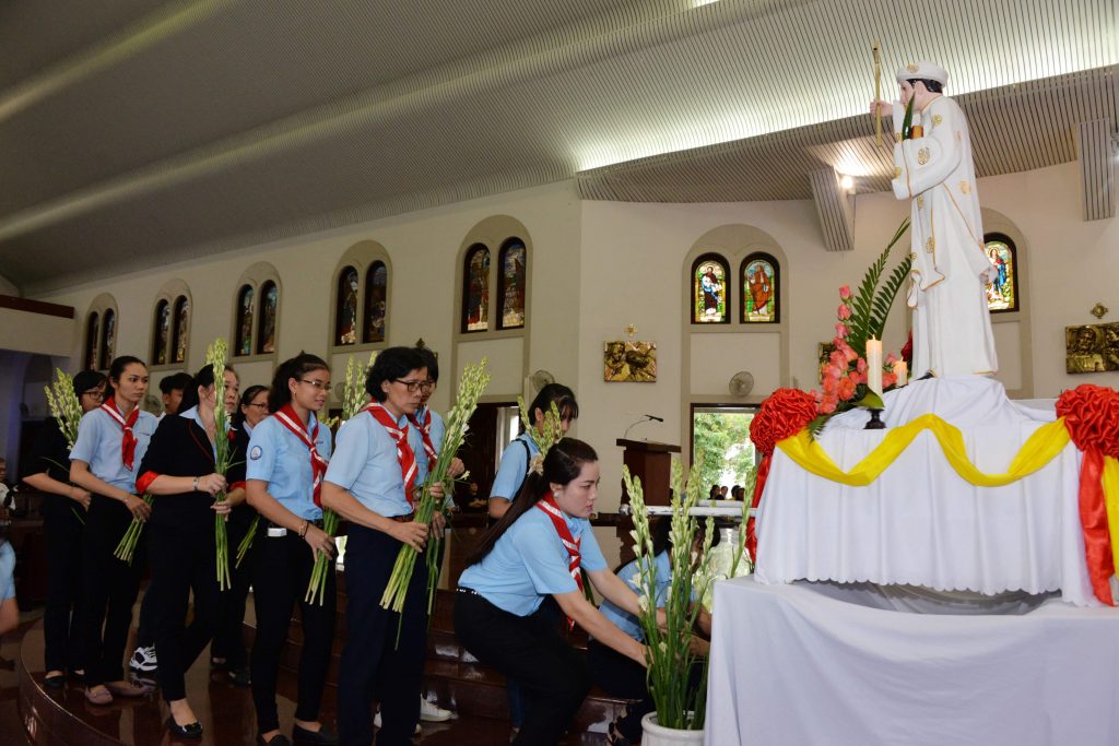 Trước thánh lễ, tại cuối nhà thờ, Cha Giuse Nguyễn Đức Thuần đã làm phép tượng chân phước Anrê Phú Yên. Sau đó, quý cha và các giáo lý viên cung nghinh tượng vị bổn mạng lên cung thánh và dâng hoa tôn vinh vị Tử đạo tiên khởi của Giáo hội Việt Nam.