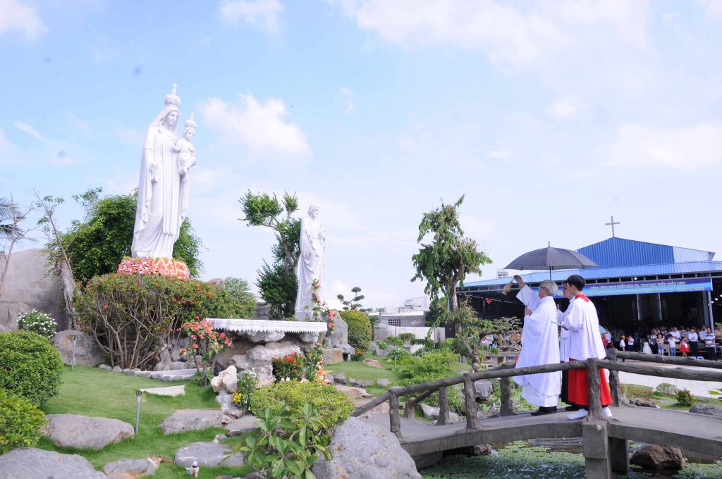 Đúng 9g00, Cha Tổng Đại diện Giuse Võ Công Tiến đã chủ sự nghi thức làm phép Tượng Đài Đức Mẹ, Thánh Giuse và bàn thờ. Sau đó, đoàn đồng tế tiến vào Nhà thờ tạm cùng với cộng đoàn hiệp dâng thánh lễ tạ ơn mừng kính Mẹ Mân Côi. Đồng tế trong thánh lễ còn có quý cha quản hạt Long Hương, Bình Giã, Xuyên Mộc, quý cha cố và quý cha. Quý tu sĩ nam nữ cùng đông đảo cộng đoàn dân Chúa trong và ngoài giáo họ hiệp dâng thánh lễ.
