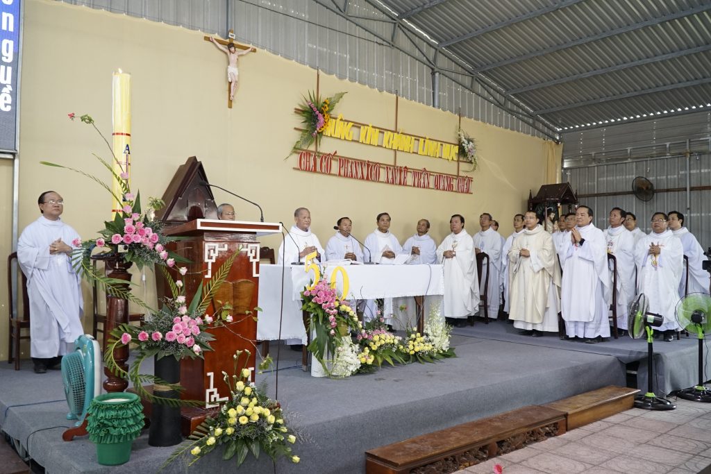 Vào lúc 9g30 Chúa Nhật ngày 28.4.2019, trong ngôi nhà thờ tạm đơn sơ của giáo xứ Láng Cát, cộng đoàn dân Chúa cùng quy tụ bên Cha cố Phanxico Xavie Trần Quang Châu- nguyên chánh xứ giáo xứ Láng Cát để cùng với ngài hiệp dâng Thánh Lễ tạ ơn Thiên Chúa nhân dịp kỷ niệm hồng ân 50 năm Linh mục (1969-2019) của Ngài.