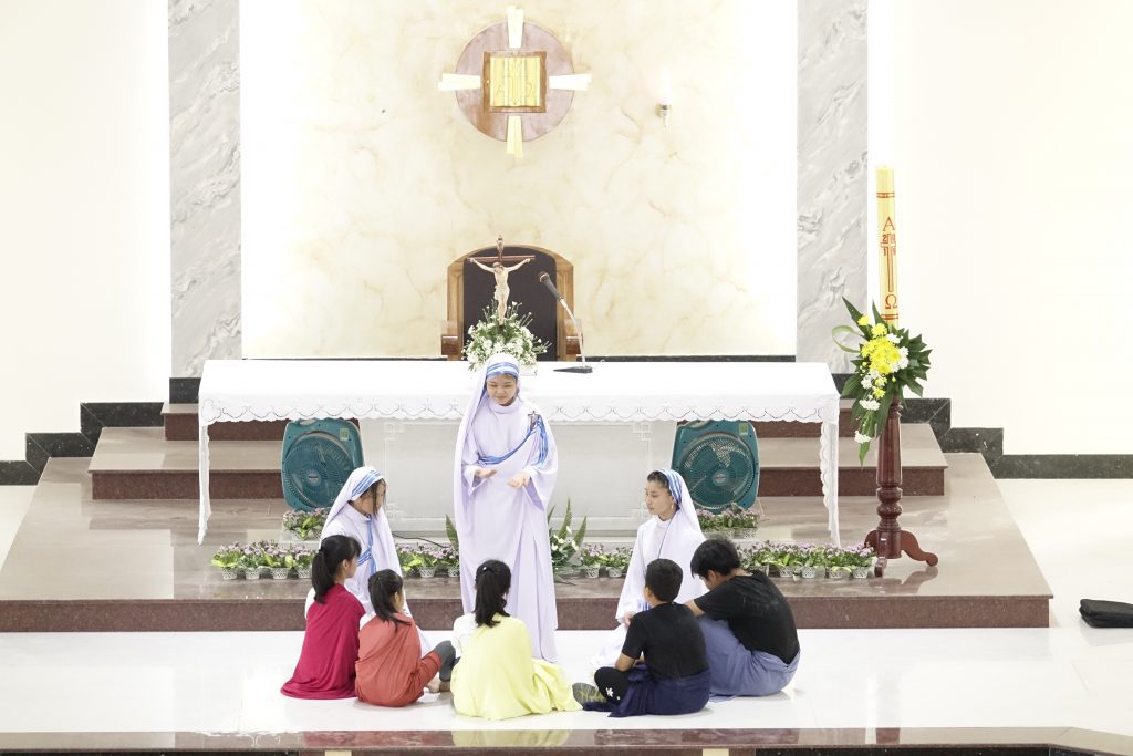 Trước khi bước vào thánh Lễ, cộng đoàn đã được xem lại diễn nguyện về cuộc đời và ơn gọi của Mẹ Thánh Teresa thành Calcutta từ những ngày đầu cho đến khi lập Dòng Thừa Sai BácÁi và vũ khúc “Chính Chúa chọn con” do các bạn lớp ơn gọi phụ trách.
