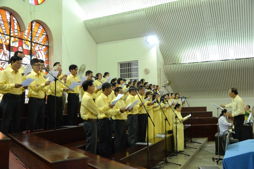 Sau lời nguyện hiệp lễ, Cha Chánh xứ cùng với cộng đoàn giáo xứ chúc mừng Ca đoàn nhân ngày mừng lễ bổn mạng. Cha nói: “Cầu chúc cho ca đoàn xứ phục vụ những thánh lễ quan trọng của giáo xứ, cũng như của giáo phận luôn luôn thăng tiến mỗi ngày, biết tận dụng những ưu điểm của mình về số lượng, về giọng ca và về kỹ thuật để càng ngày càng thăng tiến hơn trong việc phục vụ giúp cho cộng đoàn nâng tâm hồn lên với Chúa khi tham dự phụng vụ”.