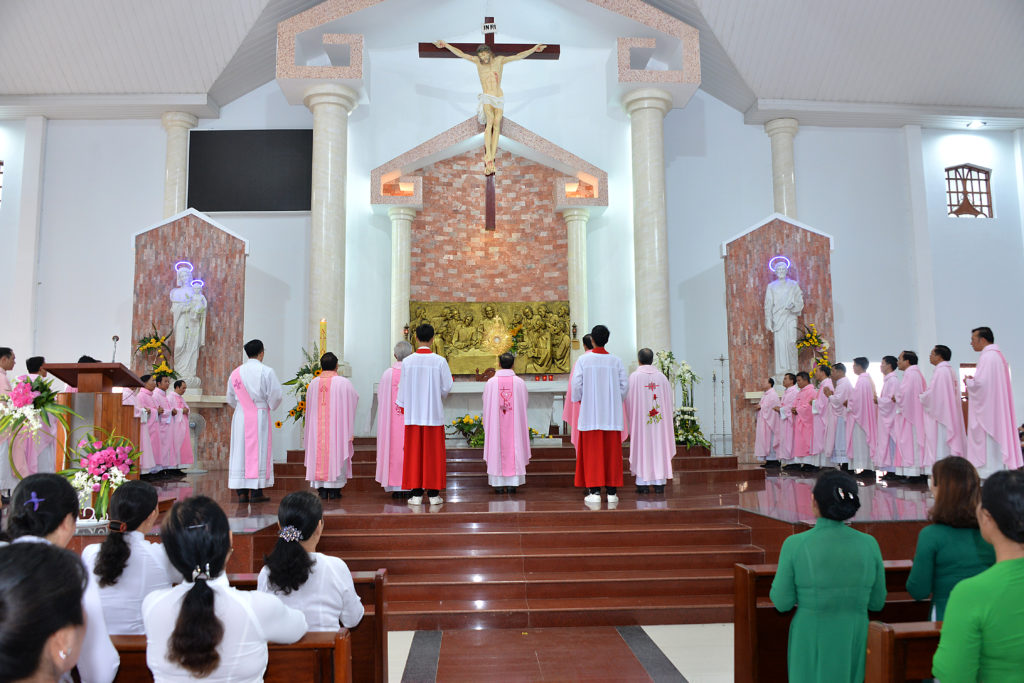 Thánh lễ do Cha Giuse Đặng Cao Trí – Quản hạt Bà Rịa chủ sự và quý Cha trong Hạt, quý Cha quê quán tại Giáo xứ Long Tâm đồng tế cùng quý tu sĩ và đầy đủ các thành phần dân Chúa trong giáo xứ hiệp dâng thánh lễ.