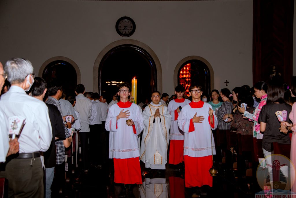 Cha Chánh xứ Giuse Đặng Cao Trí chủ sự; Quý Cha Phó xứ, Cha Giuse Nguyễn Văn Thiện; các chủng sinh; tu sĩ và rất đông giáo dân sốt sắng hiệp thông tham dự Đêm Canh Thức.