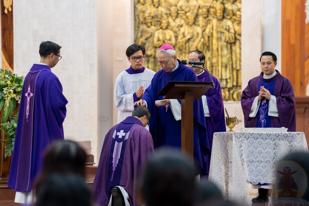 Tiếp đến, Đức cha Emmanuel đã làm phép tro và xức tro cho các cha đồng tế. Cha Chánh xứ Chánh Tòa đã xức tro cho ngài. Các cha, các thầy và các nữ tu đã xức tro cho tất cả tín hữu tham dự thánh lễ.