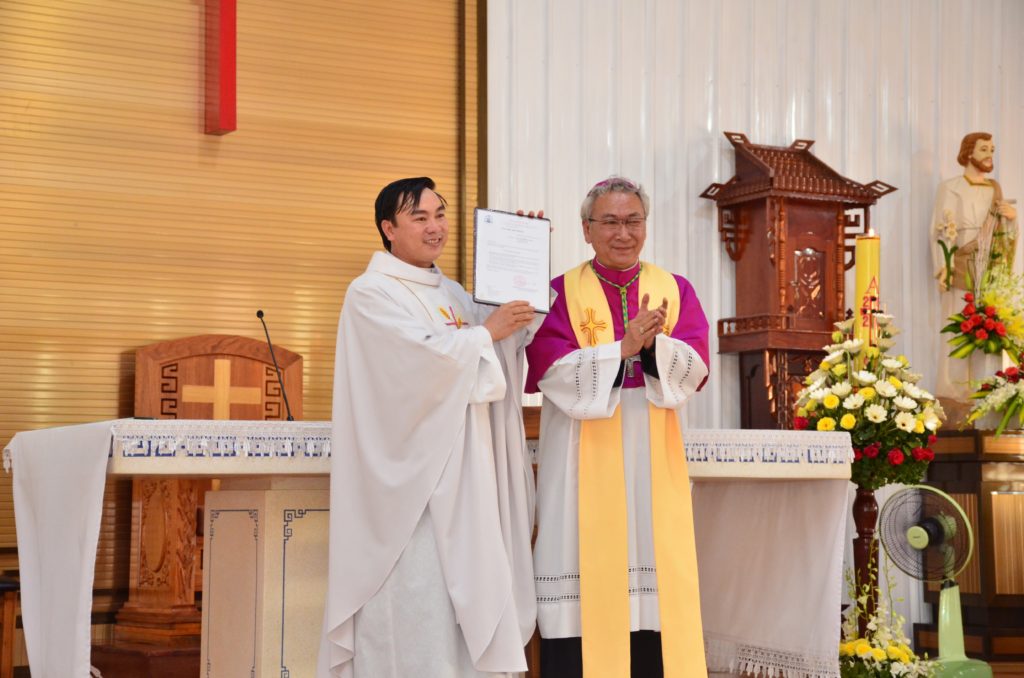 Nghi thức nhậm xứ bắt đầu lúc 9g00 do Đức cha Emmanuel chủ sự cùng sự hiện diện của Cha Giuse Nguyễn Công Luận- Chánh Văn phòng TGMBR, quý cha quản hạt, quý cha, quý tu sĩ nam nữ và đông đảo cộng đoàn dân Chúa Giáo xứ Phước Chí, Giáo xứ Chu Hải và các giáo xứ liên hệ.