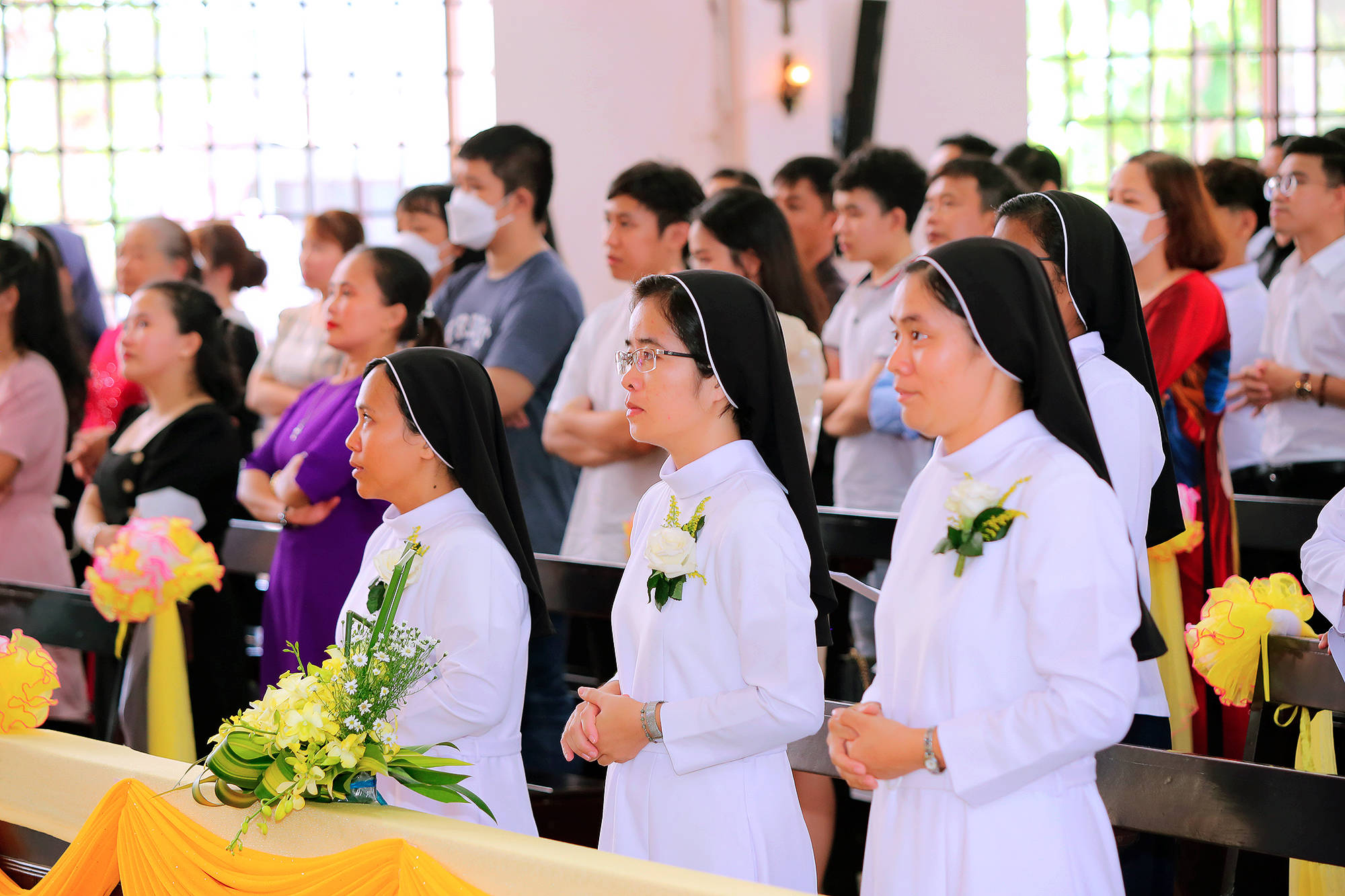 Thánh lễ kết thúc sau phép lành từ Cha chủ tế, sau đó mọi người cùng chia sẻ niềm vui với Hội Dòng trong bữa cơm ấm tình gia đình.