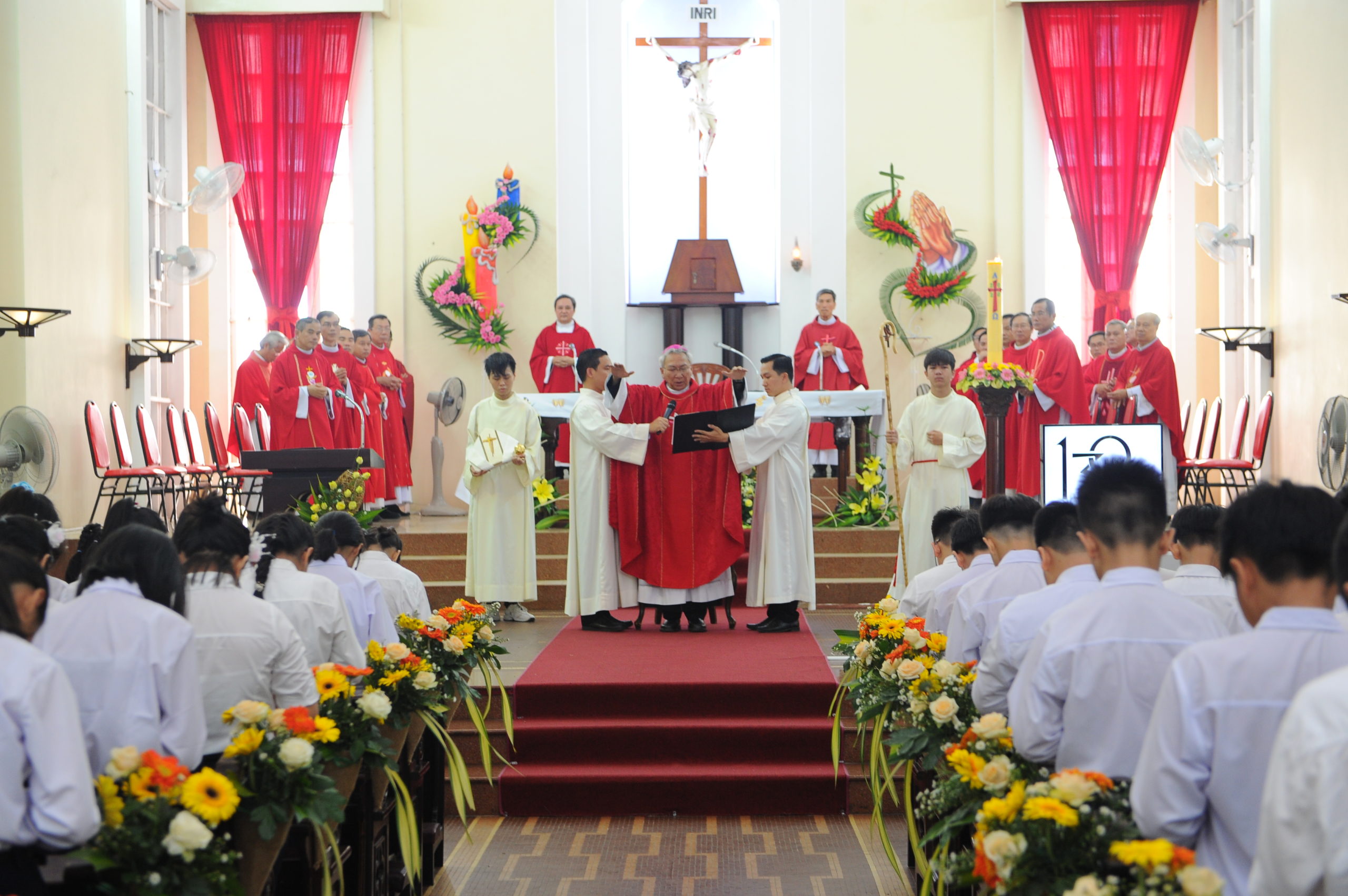 Sau bài giảng, Cha Chánh xứ giới thiệu lên Đức cha 176 em thiếu nhi đã được học giáo lý, được sát hạch và đủ điều kiện để được lãnh nhận Bí tích Thêm sức.
